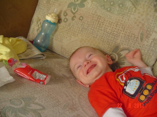 Af en toe even met lodderige oogjes naar mij kijken, grote grijns en dan weer verder maffen.