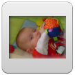 Beetje huilend wakker, op schoot knuffelen en binnen 2 minuten is huilen over. Bart perst, knettert, stinkt en lacht. Bart wil rechtop zitten en spelen: sokken uit, bal of boekje pakken, lachen, kletsen. Op het kleed gaan we wat rollen en verder spelen. Bart houdt van gezichten en haren graaien en geeft dan kletsnatte knuffels.
