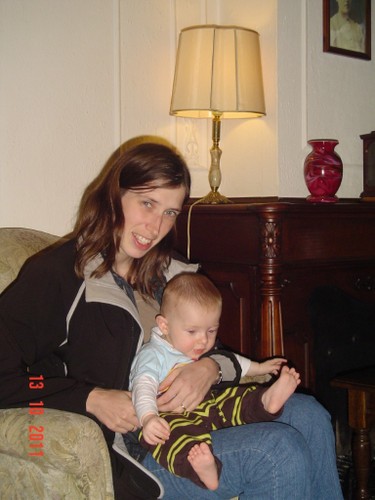Ik zal maar even laten merken dat het weer etenstijd is dus ik ga mopperen. Nee ik wil niet slapen. Omadien geeft me dan een een schone luier want een natte plasbroek is ook niet fijn. Nog even knuffelspelen en dan in de keuken bij de kraan wachten op papa, maar die belt dat mama eraan komt en die staat tegelijk voor de deur. HA!!! ETEN!!! Nu ben ik weer een tevreden mens.