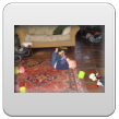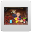 Verder spelen in de box, ik ga opruimen. Dan op het kleed.