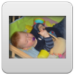 Op de terugweg met de zon in z'n gezicht en uit de wind valt Bart in slaap. Is zo ver weg dat hij zelfs niet wakker wordt als ik hem thuis z'n jas uitdoe en in de wipstoel installeer.