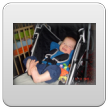 Spelen? Nee, Bart wrijft weer in z'n ogen en geeuwt. Nu doe ik een trucje, in de buggy voor het raam, rustig voor- en achteruit rijden, zingen en Bart's ogen zakken steeds meer dicht.