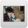 Bart moppert weer een beetje en ligt met een rood hoofd te knetteren. Paar slokjes water op schoot en dan een schone luier, stinkt een beetje, maar geen poepie. Verder spelen, maar Bart blijft protesteren, is moe, geen wonder na al die fysieke inspanning, bijna marathonprestatie. Dus op schoot.