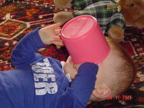Even wat diksap drinken op schoot, yam! en spelen met de fles. Wordt een beetje doezelig.