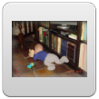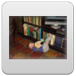 Bart ontdekt de ballenroller onder de bank, nee doe maar niet daarop sabbelen, dat ding is stoffig. Ook goed, Bart is tevreden met z'n muis. Blokken zijn ook leuk: als je erin toetert, geeft dat een echo.