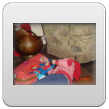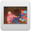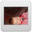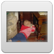 Wakker, even op schoot bij de tijd komen. Heeft weer de hik en geeft nog geen honger/dorst-signalen dus even een ander spelletje: oefenen met de poef. Staat nog wat ongecoördineerd op z'n voeten, maar als ze in de juiste stand staan, kan Bart prachtig op en neer wippen. Grote grijns en de hik is weer over! Verder met tijgeren. Bart heeft de lampjes-apparaten weer in de gaten, geeft niet, kan hij toch niet bij. MIS oma! Hij geeft een mep op het KPN kastje en de tv schiet uit, oeps. Door de "klap" is een scartkabeltje wat los geraakt. Ik barricadeer dus de apparaten, de eerste verdedigingslinie, kijken wat de volgende wordt.