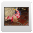Verder tijgeren en rollen, kletsen en grijnzen, ieder speeltje wordt weer bekeken. Bart krijgt de hik. We gaan even "lopen" en ja hoor, er komen prikkels door de zenuwbanen, alleen als Bart onderweg iets belangwekkends ziet, vergeet hij zijn staken mee te nemen en laat ze lekker achter zich aanslepen. Dan stoppen we even tot hij het weer "voelt" en verdergaat met stapjes van zo'n 10 cm, grote grijns op z'n bekkie en de hik gaat over.