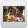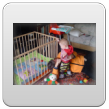 Wakker! Gauw naar de keuken papfles maken. Bart wacht op z'n gemak en drinkt daarna achter elkaar de fles leeg. Dan weer spelen. Daar is oom Bart en die gaat meespelen. Ik zet de muziekjes van de ballenbaan aan en daar gaat Bartje enorm van grijnzen; legt af en toe z'n rechteroor op de grond om te luisteren waar dat geluid nu precies vandaan komt! Grijns- grijns-grijns.