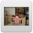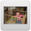 Wordt weer een beetje moe en wiebelig, heeft moeite met gaan staan, dus even in de box. Heeft weinig zin, nu kan hij zich weer optrekken aan de rand want dat scheelt een paar centimeter in hoogte. Muziek weer aan, Bart staat te wiebelen en te balanceren met 1 hand vast (evenwicht!!), bij iedere inspanning: buh-buh-buh. Hij schuifelt nu ook van links naar rechts, een complexe motorische inspanning!