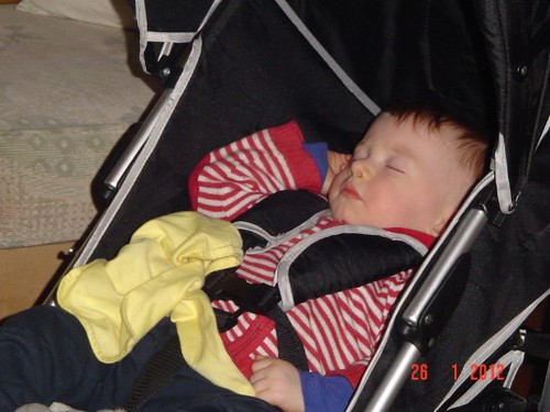 Tijd voor een dutje, in de buggy naast de bank, nog even wat drinken, heen en weer rijden en binnen een minuut vertrokken.