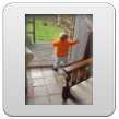Wakker en kletst, èè-bu-èè. Naar de keuken, boterham jam, fruithap en roosvicee klaarmaken. Opeten in de kinderstoel voor het raam. Bart heeft zin in sproeien, vooral bij de fruithap en ik moet regelmatig wegduiken, Bart schatert. Ik ben nu alert en hou de slab voor z'n mond zodra ik een fontein zie aankomen. Op en spelen. Bart sleept nu de gele bal overal mee naar toe.