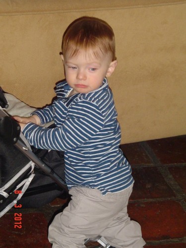 Nu echt wakker. In de buggy nog even bijkomen en naar de keuken papfles maken en dan opdrinken.