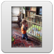Papa is er. Bart is bezig in de kamer. Kom bij het raam kijken: papa. Bart kruipt mee en ziet dan papa, kraait, gaat staan bij het raam, handjes grijpen, kraait/lacht. Kom maar mee, deur open doen, papa is er. Bart scheurt mee naar de keuken, papa! Nog even spelen en dan fiets opladen, jas aan, helm op en naar huis.