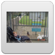 In de box terwijl ik de buggy binnenhaal en de boel opruim. Dan een schone luier en in de buggy voor het raam heen en weer rijden. PROTEST, SCHOENEN UIT. Nee aan, "an", ja aan, "an". Ik zet de buggy naast de bank, daar maar proberen het stukje onrust rustig te krijgen.