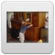 Bart staat zichzelf te bekijken in het raampje van de kast en krijgt een rood hoofd. Heb je een poepie gemaakt? Bart blijft het fenomeen "reflectie" bestuderen. Na een paar minuten kruipt hij terug naar het kleed, pffff!!! Gauw schone luier, een fikse beer geschoten.