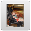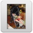 Boterham eten en melk drinken. Bart eet zelf brokjes liga en tussendoor geef ik de hapjes boterham. Daarna handjes en toet wassen, schone luier/droge kleren en in de buggy. Ik zet de babymuziek op en Bart lacht tevreden.