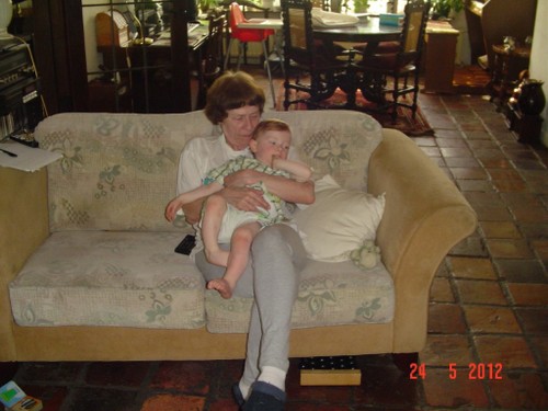 Vandaag is Omadien een beetje grieperig. Vandaag dus geen oppasdag. Gelukkig is het Hemelvaart en zijn Papa en Mama vrij. 's Middags gaan we wel op visite en dat is erg gezellig. Bart laat vol overgave zien hoe je het orgel bespeelt. Papa en mama vinden het prachtig.