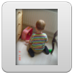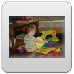 Kom maar, je mag LOS. Bart wil naast me op de bank, even wat drinken en kletsen. Na 10 min. gaat hij tegen me aan leunen en z'n ogen vallen bijna dicht. Oeps, da's niet de bedoeling, vandaag beginnen we met slapen in het echte bed boven en dan moet je echt moe zijn. Kom we gaan boekje lezen op het kleed. Dan is de Bart weer opgeladen en speelt zelf verder. In het deksel van de trommel kan hij zichzelf zien en we kunnen kie- - - kiekeboe spelen. Schateren.