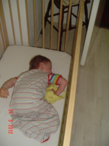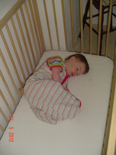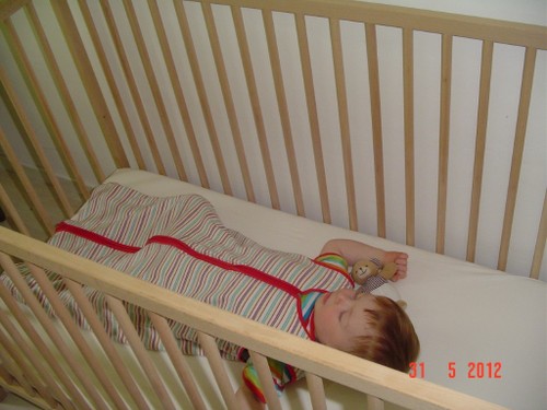 Eerste keer in bed geslapen!!! En nog wel 2½ uur! Benieuwd hoe het volgende week gaat, hoop dat het kamertje nu vertrouwd is. Minder exantheem op armpjes en beentjes, nog wel vlekjes op z'n rug. Geen temp, alleen hangerig af en toe.