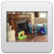 Bart: koek - keuke. Natuurlijk meneer, kom maar, gelijk drinken meenemen. Terug in de kamer liga eten en verder spelen, mama komt terug en Bart struint door de kamer en kletst.