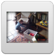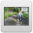 Daar is papa op de fiets. Nog even spelen, kippe kijke bij het hek, boeme wuike. Naar binnen schone wuiwe, nog even spelen, sesamstraat kijken, dansen bij siek, foto's kijken.