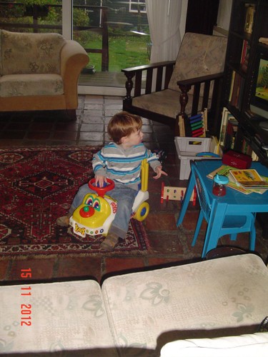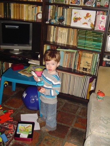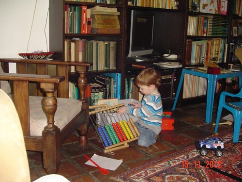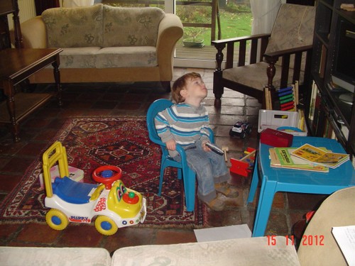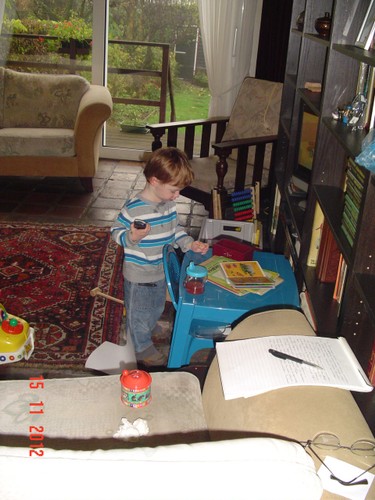 (Bart speelt verder en ik ruim gauw even op, terug in de kamer:) oma ete koke.