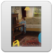 Bart klost naar binnen op z'n nieuwe schoenen terwijl papa de spullen van de fiets haalt. In de kamer jas en helm uit, muziekdoosje proberen, timmeren en dan tijd voor koek en sap pakken en papa uitzwaaien.