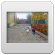 Auto, hond!! hond aai (nee, hond wil lopen. Nog even bij het hek kijken naar de herrie-machines en dan naar huis).