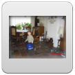 Papa en oom Bart gaan weg, uitzwaaien in de keuken, dan haalt Bart de kasten leeg: "kippeboe, tee! (houdt triomfantelijk 2 wissers omhoog), koke, poede bij". Terug naar de kamer, "siek aan", bezig met theetafel en ondertussen meekletsen met de muziek.