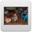 We zijn op zolder, oom Bart's kamer, kleine Bart kijkt z'n ogen uit. Ik duik even achter de schotten om het pakhuis te pakken. Daarvoor moet eerst het poppenhuis eruit, want oom Barts bed staat in de weg. Bart kijkt met grote ogen naar mijn geworstel: "oma nou? oma nou? Bart kijke". Ja ik kom, kijk da's een poppenhuis, ik doe het open en duik weer op het bed om het pakhuis tevoorschijn te wurmen. Niet nodig. Bart is compleet geabsorbeerd door de priegelkamertjes en -meubeltjes van het poppenhuis. Pfff, eindelijk zware pakhuis eruit maar Bart kijkt er niet naar om, doet deurtjes, laatjes, kastjes, oventje, gasfornuisje open en dicht. Ik zet het poppenhuis maar op de tafel, kan hij er makkelijker bij. Even is hij afgeleid door het geluid van een vrachtauto. Wil je even kijken? Op tafel uit het raam kijken, Bart kijkt van 3 hoog even naar buiten maar heeft het al gauw gezien: "af, af" en terug naar het poppenhuis. Tussendoor flinke "natte neus" afvegen. Na 3 kwartier vraag ik maar eens of hij naar beneden wil: "NEE", wil je dan Mickey Mouse kijken? "JAAAA".