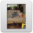 Zit in z'n stoel naast me en drinkt wat sap en eet een koekje. Als ik een foto maak, gaat Bart met een grijns poseren. Verder spelen: