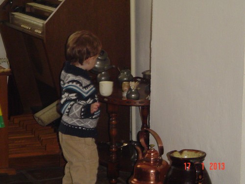Bart wil kofffie maken en zoekt spullen om dat goed te kunnen doen. We halen in de keuken wat dingen en Bart wijst aan: "die ook, die ook". Nee da's een eierdop, kijk maar. "Oma anne pakke", nee je hebt nu 2 bekers en een koffiepot, da's genoeg. (Later bedenk ik me dat ik het koffiefilter ben vergeten, volgende keer)