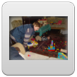 Verder speelgoedkist: "alles uithale, leeg make, alles op". De vloer ligt nu bezaaid. Bart is bezig met een puzzel en dan: