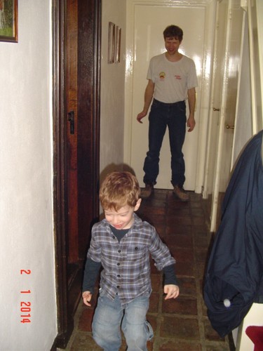 Bart heeft z'n sneeuwman-plakwerkje af en trekt zich terug in een rustig hoekje: achter het deurtje van z'n kast. Het blijft daar heel stilletjes, komt niet terug met z'n gereedschap of andere zaken. Dus na een paar minuten ga ik even kijken: 'wat doe je?', maar dan ruik ik de bekende walm, 'heb je een poepie gemaakt?' "JAAAA".