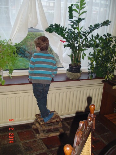 De Zeesterren spelen buiten en staan op het punt naar binnen te gaan. Bart is met nog een paar kindjes druk bezig onder een boom, zwiept heen en weer met een tak. Het duurt even voordat hij doorheeft dat ik er sta, dan komt hij aanrennen: "oma oma ik heb een stok". Wat een mooie, maar nu gaat iedereen naar binnen en ik kom je halen. "Dan sa ik bij jou ete", precies, een juf zegt Bart dat hij even moet wijzen waar z'n spullen staan en wij naar binnen. "Hie oma", hij wijst feilloos de kast aan. We gaan weer naar buiten waar het laatste grut nog verzameld wordt. Zeg maar dag en tot morgen, "das Lasa", Lara kijkt vaagjes met een enorme snottebel onder haar neus. "Ben je mette auto?", ja, "waa istie?", naast de kerk, "ik zie hem, ik sa bij jou ete hè oma? niet hieg, en bij jou slape, en mosse ook, en siste", nee toen was je bij mama. Inladen in de auto, Bart in z'n stoel: nog een keer: "ik sa bij jou ete en slape en dan spele en dan komt papa mij hale of mama", nee papa komt jou halen, "ik denk mama". Dan: "die menee heeft een hollatoh, wahom?" misschien heeft ie stijve benen, "wahom?" dat gebeurt soms, "mette hollatoh kan hij wew soed lope". Onderweg graafmachines, "wahom?", misschien was de weg kapot, "wahom?", of ze leggen kabels of een nieuwe riolering, "ik denk hio...ho..ling", o ja? "ja dat weet ik, ik weet alles", kijkt nonchalant naar buiten. Stoplicht groen, we rijden verder, weer een graafmachine, "doetie?", sloot uitgraven, "wahom?", zit misschien teveel modder in, "wahom?", daarom. "Da is hoosvliet, saan we da heen?", wil je dat? "nee, da saan we soms heen". Langs Hofwijck: '" da sing papa touwe", weet je dat nog? "ja, en mama". Op het pad: "ik zie bouwlifte weew, wannee is jou huis sebouwd?" Heel lang geleden, "wahom?" dat is gewoon zo.