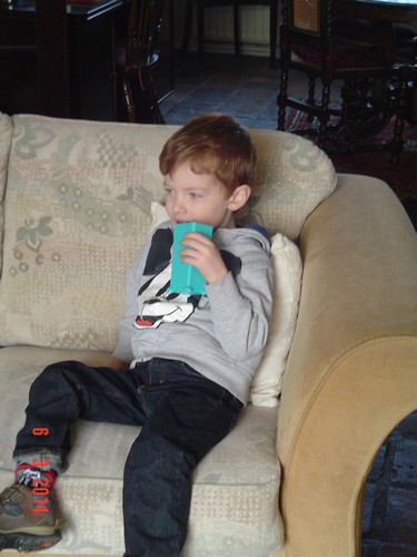Kom Bart, brood smeren, "ik wiw buite blijfe", eerst eten en slapen dan kun je vanmiddag weer naar buiten, "ik wiw niet slape", hoef je ook niet te willen, nu gaan we eerst eten. Binnen pakt Bart direct de electro, komt niet eens naar de keuken om op z'n stoof mee te kijken naar het smeren of om een plakje kaas te vragen! Druk bezig met het uit elkaar halen en in elkaar zetten en met het aan/uit knopje. Dan eten: "ik sing niet bij jou kijke oppe stoof", nee je was veel te druk bezig, "ik wiw mikkie mous kijke", is goed maar eerst alles opeten. Klaar, wat wil je zien? "sessasiesasses, zal ik wel efe pakke", Bart installeert zich op de bank, drinkt chocomel op en roept mee met de dvd. Afgelopen: "ik wiw niet slape", je hoeft ook niet te willen, gebeurt toch. Eerst schone luier en tanden poetsen, ga pop en hond maar pakken. Bart loopt zonder morren de trap op.