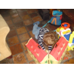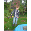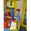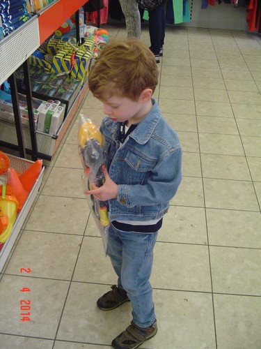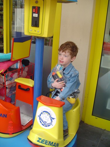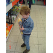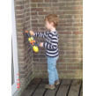 Bart slaapt nog half, rustig wakker worden, tijdens aankleden beetje kletsen. Beneden: nu eerst yogho opdrinken en dan gaan we naar de winkel, "ik zie mijn yogho niet", die staat hier. Naast me op de bank opdrinken, jas aan en de auto in. Er wordt weer gehannest met de kerkbrug, gevolg is dat de slagbomen naar beneden blijven, software dus weer van slag. Wijkerbrug is ook afgesloten dus dan maar via de sijtwendetunnel, daar staat halverwege ook een file: "staks is watepistool dist", nee winkel is nog open, "hoe lang is de winkel ope?", tot 6.00 uur dus we hebben tijd genoeg. Eindelijk rijden we het plein op, zie je wel? winkels zijn nog open, "jumbo is ook ope" (hoe weet hij dat daar een jumbo staat???). We parkeren de auto en lopen langs bart smit, in een mand buiten liggen nog 2 kruiwagens, een groen en een rode. Bart ziet onmiddellijk een dealtje: "als ik 2 X in potje heb geplast kijs ik een rrode krruiwage erbij", nou dat dacht ik niet! Bij zeeman zoeken we een waterpistool uit: "dese is MOOI!" en baasje wil er al mee naar buiten lopen. Eerst even betalen Bart! Dan buiten in de draaimolen en centje erin. Al gauw voelt hij zich blijkbaar een beetje opgelaten: "efe stilzette oma", kan niet mannetje en Bart draait een beetje ongemakkelijk door. Dan komen er 2 kleuterdametjes aan die zeggen dat ze mee willen draaien. Dat vindt meneertje prachtig, dametjes juichen en Bart praat met stoere stem en heeft lol. Terug naar de auto en met een omweg terug naar huis want de kerkbrugproblemen zijn nog niet opgelost. Dat betekent veel wom's van Bart en veel uitleg van mij.