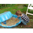 Papa is er: "papa . .papa, ik haal mos weghg". Nog even buiten zitten en wat drinken, Bart wordt weer een beetje recalcitrant en spuit papa's been nat ondanks verbod. Ik neem z'n waterpistool af en meneertje probeert vervolgens diep beledigd verhaal te halen bij papa maar dat werkt niet, maakt echte huilgeluiden maar tranen zijn niet te zien. Dan nog maar even sap opdrinken, spelen met zandbak en waterpistool en even later naar binnen en inpakken.