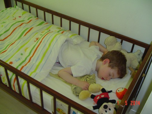 Tijd Bart, kom even plassen, "nee ik ben nog eve bezig", het is tijd Bart, NU komen. Hij hoort blijkbaar aan m'n stem dat het menens is want nu gaat hij netjes op de wc zitten en ik loop even weg, "PLAS IS GEKOME!!!", goed zo, dag plas, lekker zwemmen. Kom gaan we luier aan doen, "eerst eve iets pakke", hij loopt naar z'n kast en pakt het treintje en treuzelt. NU komen Bart! Hij kijkt me even aan en besluit dan maar op de bank te gaan liggen, goed zo! En nu even tanden poetsen, kom je? "Nee ik wil niet komen", pfff baasje blijft het proberen, ik loop vast naar de keuken: je hoeft ook niet te willen, je hoeft alleen maar tanden te poetsen, "ik heb geen zin". Vanuit de keuken zeg ik: kom Bart, ik sta te wachten, "nee ik wil niet komen", ik vind het vervelend om te wachten Bart, "neehee ik wil niet komen!". Nu geef ik geen antwoord meer en wacht met tandenborstel in de aanslag (argumenten of uitleg hebben geen zin), vanuit de kamer: "ik heb geen zin om te komen oma!!!", ik zeg niks, "OOMAA!", ik zeg niks, "oma??, ik zeg weer niks en nu blijft het een tijdje stil, ik kan z'n hersens bijna horen ratelen! En dan komt hij aanlopen, gaat op z'n stoof staan met z'n mond open zodat we direct kunnen poetsen. Precies. Klaar en naar de kamer knuffels pakken, Bart gaat zonder protest mee, ga maar even je pop en hond pakken, "neee! ik wil niet!", daar gaan we weer. NU gewoon even uit je rugzak pakken!, "eve kruiwage pakke", heel vlug dan! en schuifpui weer netjes dichtdoen! Bart naar balkon, komt terug met kruiwagen en pakt pop uit z'n rugzak. Doet dan nog 1 laatste poging: "ik kan beeste er niet uit hale!" Jawel dat kun je wel, anders moeten ze beneden blijven. Oei, dat had baas niet ingecalculeerd en razendsnel worden alle knuffels in de kruiwagen gekwakt. Zonder verdere confrontaties gaan we dan naar boven. Als hij ligt vraag ik: en hoe ligt dat? "lekker", dan gaat hij toch weer zitten: "ik wil nog eve zitte boek leze", da's goed en dan gaan slapen, "ja als ik boek uit heb", meneertje wil beslist het laatste woord. Weer kijk ik door een kiertje en binnen een paar seconden kruipt hij weer onder z'n dekbed. De boef!
