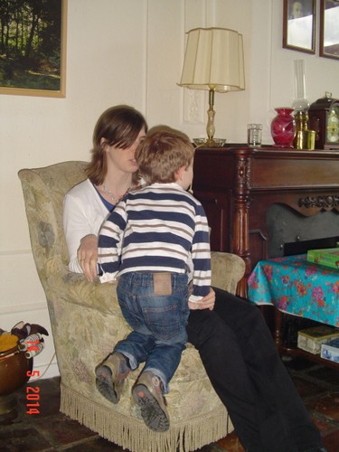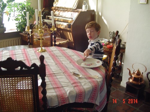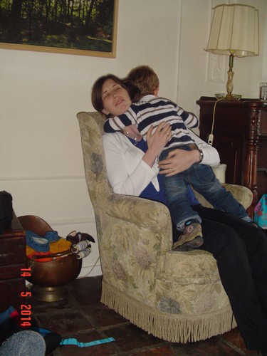 Mama is er, we zitten nog even te kletsen en dan is het eten klaar, Bart eet z'n bord pasta leeg met z'n handen, hele toet rood van de saus, z'n vla kan er dan niet meer bij. Hoogste tijd om in te pakken.