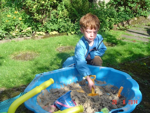 Dan is hij een tijd druk bezig takken te verzamelen en ze naar de kit te rijden om ze daar vervolgens in te gooien: "we zijn hard aan het werk hè oma?". Nou en of, ik ben blij dat je zo goed helpt!