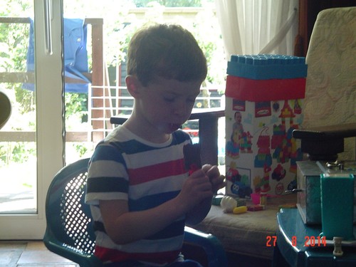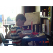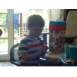 Even wat druifjes eten en yogho opdrinken, Bart ziet kans voor een onderhandeling: "dan kan ik daar koekjes bij eten", oké ga maar halen. Komt (natuurlijkj) terug met sponge-bob-doos. Lekker knabbelen en ondertussen oefenen we cijfers met de telmachine. Hij heeft ze bijna allemaal goed!