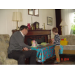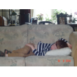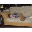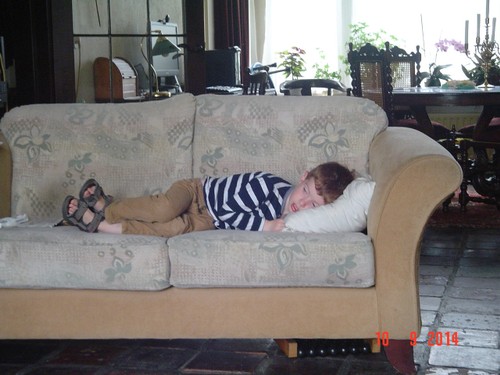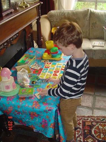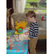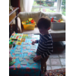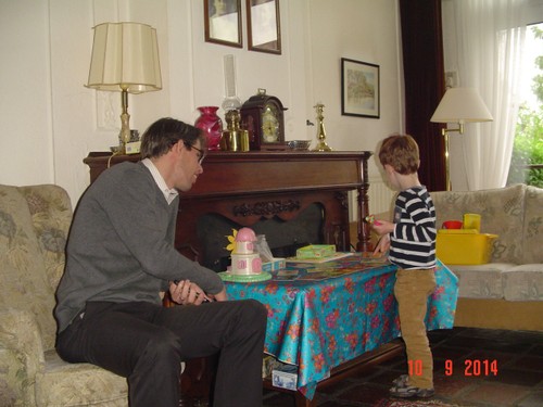 Ik maak hem wakker en dat kost een hoop moeite, maar na koekjes, sap en een 'fluitje' is hij weer bij de tijd, we lezen een paar Tip-boeken. Wanneer oom Bart thuis komt, laat Bart apetrots z'n puzzelkunsten zien. Om 17.00 is het tijd en breng ik baasje naar huis.