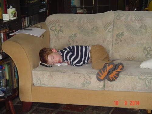 Tijd voor actie: met waterpistool en step op balkon, het regent een beetje maar onder het zonnescherm blijft het droog: "dat is handig hè jouw zonnescherm". Na een ½ uurtje binnen op de bank zitten: "nu kan ik even kikker kijken". Bart leunt tegen het kussen en tijdens de aflevering zakt hij steeds verder onderuit. Als kikker afgelopen is, begint hij te geeuwen en is binnen 5 min. vertrokken, zelfs van hoestbuien wordt hij niet wakker, draait zelfs een keer de andere kant op.