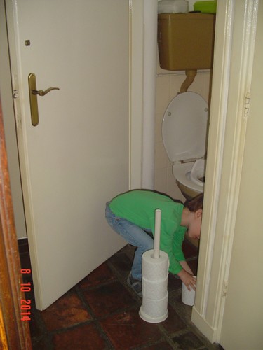 Vooruit maar, we halen kasten en laden leeg, Bart helpt mee en ontdekt allerlei schatten: "deze kan ik mee spelen (soeplepel), dus die hoef je niet weg te gooien . . . deze hebben we thuis ook . . . portemonnee, heb ik thuis ook, die hoef ik niet . . . fototoestel, hebben we thuis ook, heb ik van papa . . . . wat is dat?" Dat zijn spanbanden, die doe je om een koffer, "wom?".