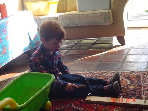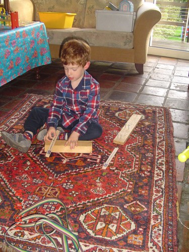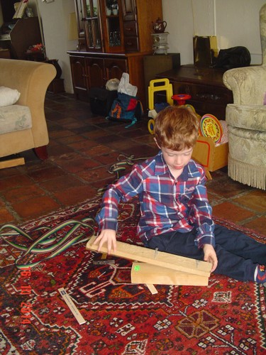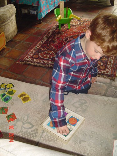 Even mama bellen of ik nog een pufje kan geven. Dat mag hoewel mama een beetje bang is dat de ventolin op is. Dan gaan we samen memory spelen. Bart wint en glorieert: "ik heb de grootste stapel, jij hebt maar een klein stapeltje", even MM kijken. Bart wil gaan liggen maar dat lukt niet want hij krijgt steeds hoestbuien waarna hij naar adem snakt. Dan weer timmeren.
