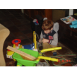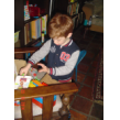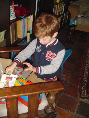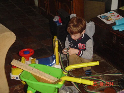 Thuis eerst even met elektro, kiest ook de moeilijke kaarten en het gaat steeds beter! Ruimt dat weer netjes op en gaat timmeren. Dan wil hij MM kijken: Deze . . klarabella's kippetjes". We maken een afspraak: deze afkijken en dan even liggen en daarna bob de bouwer kijken. Bart knikt en leunt met een wit bekkie achterover.