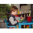 Marian vertelt: we zijn met de loopwagens naar de glasbak geweest en naar AH en Bart heeft buiten gespeeld in de auto, hè Bart? Het interesseert baas niet, heeft veel belangrijker nieuws: "kijk oma, er is een nieuw hek gemaakt!!!" Wordt dan stuiterig en gaat over de grond rollen, gauw jas aan.