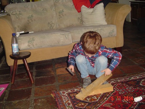 hoort niks. Binnen direct timmeren, dan zie ik dat z'n schoenen