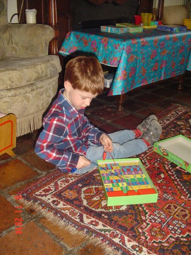 hij zelf z'n sokken en schoenen weer aan. Zo nu kun je tenminste zien